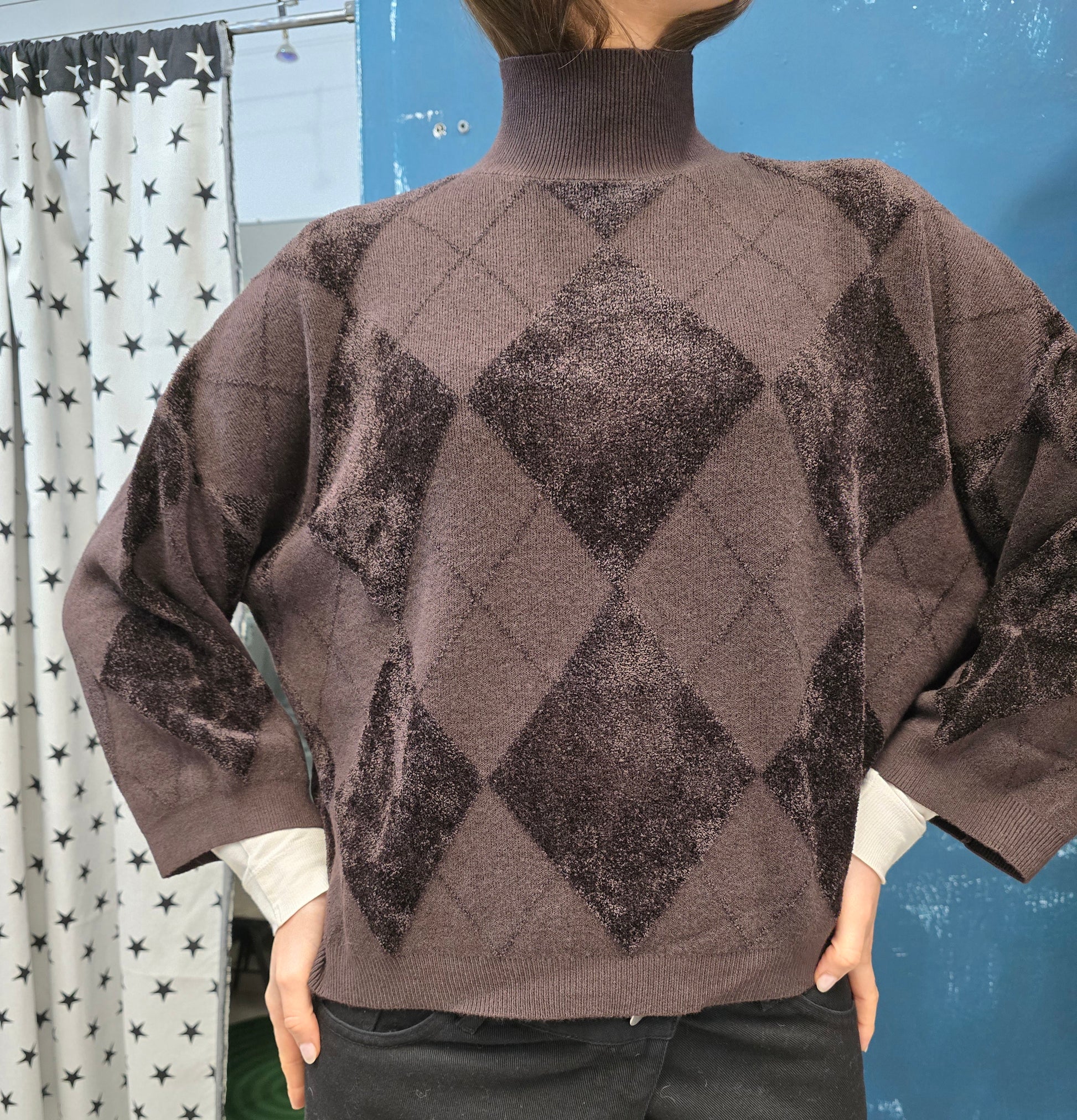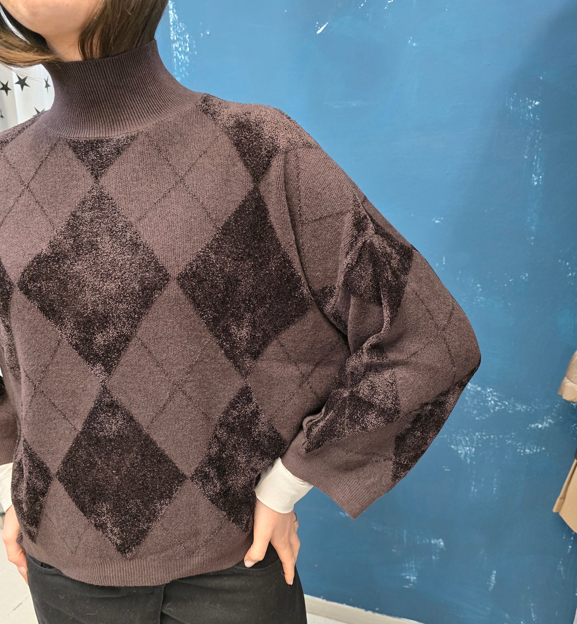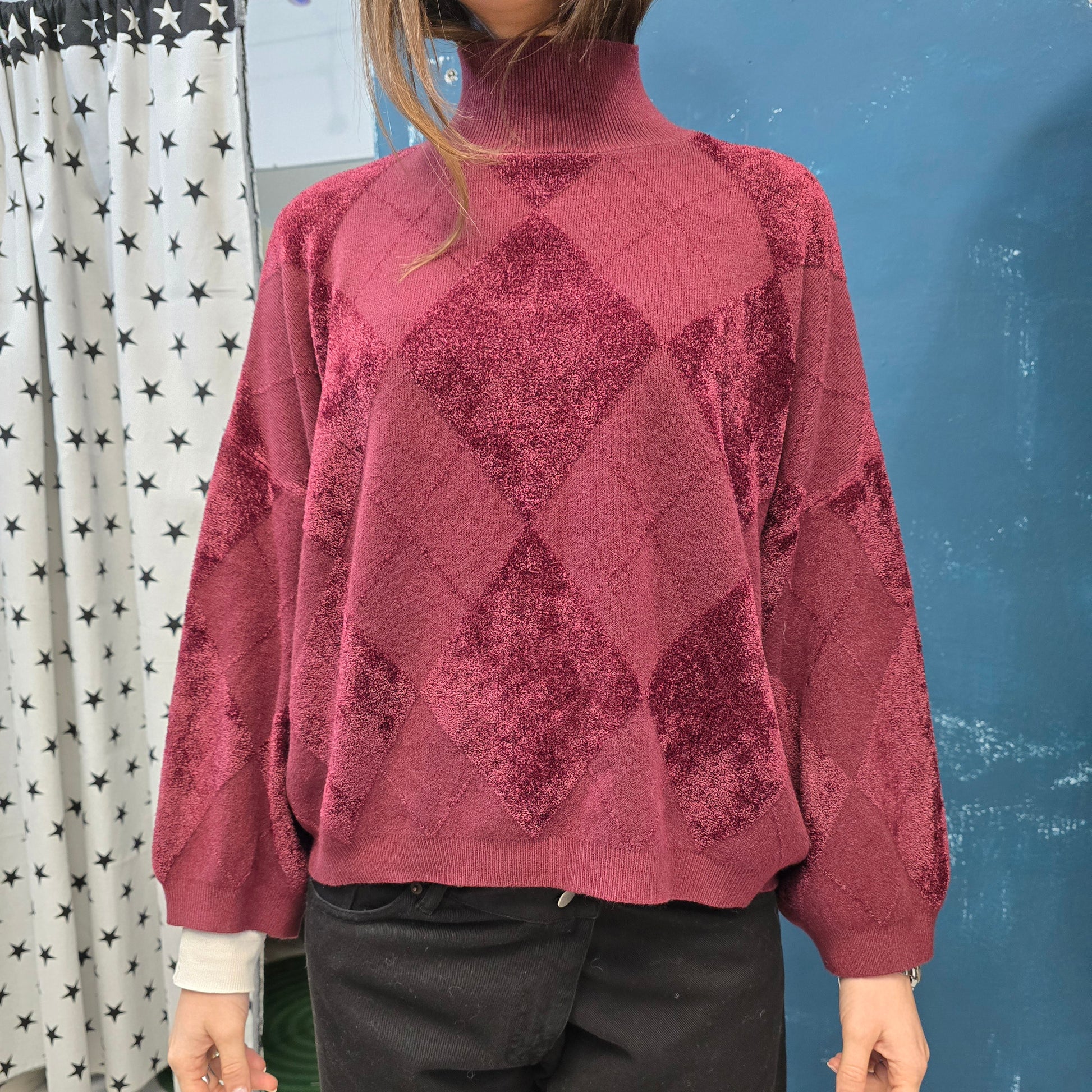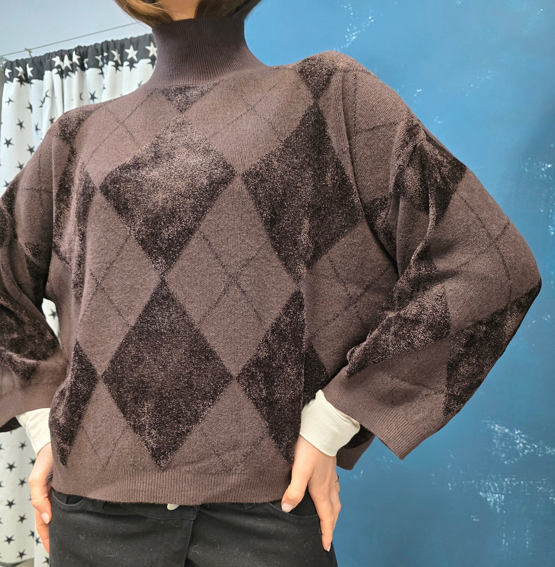 La maglia a rombi in ciniglia perfetta per il giorno e per la sera