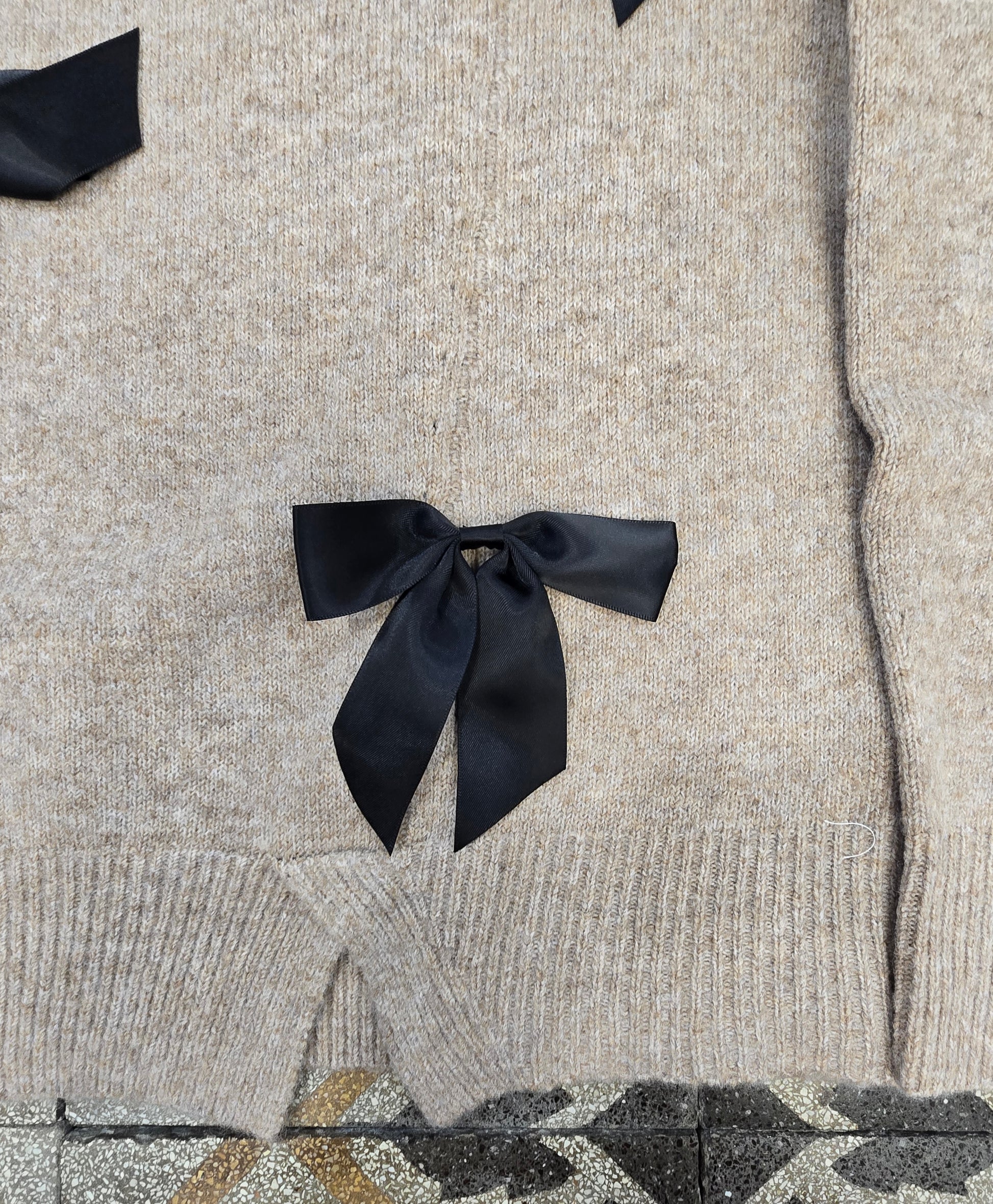 Maglia Applicazione Fiocchi Raso Davanti Corta Larga Camel