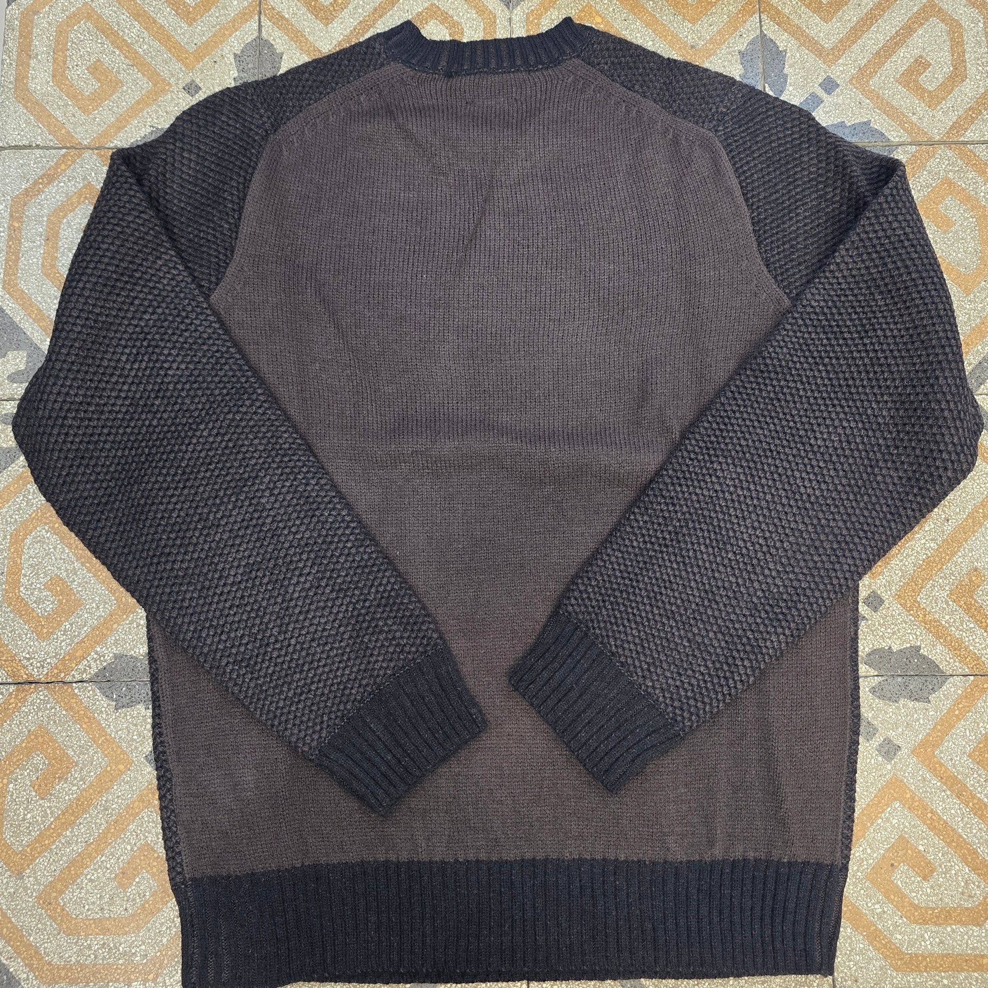 Maglia paricollo in misto lana con lavorazione a pannocchia nero e marrone.