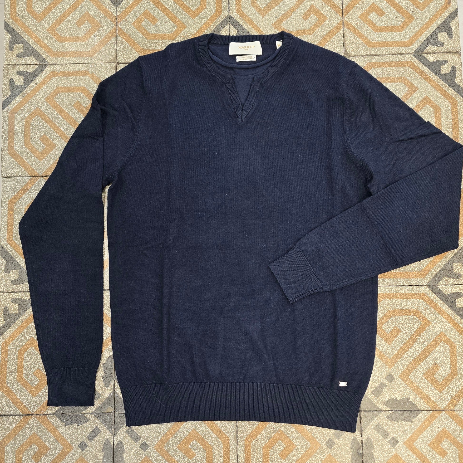 Maglia serafino in viscosa senza bottoni con finta t-shirt sotto tono su tono.