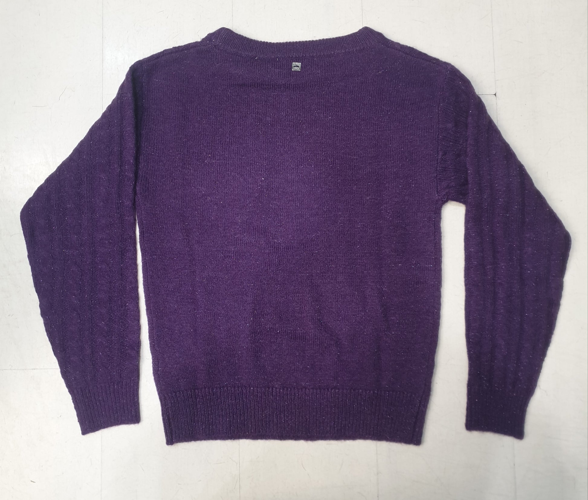 Maglia con scollo a barchetta lavorazione a treccia sul davanti con filato lurex colore viola vestibilità regolare