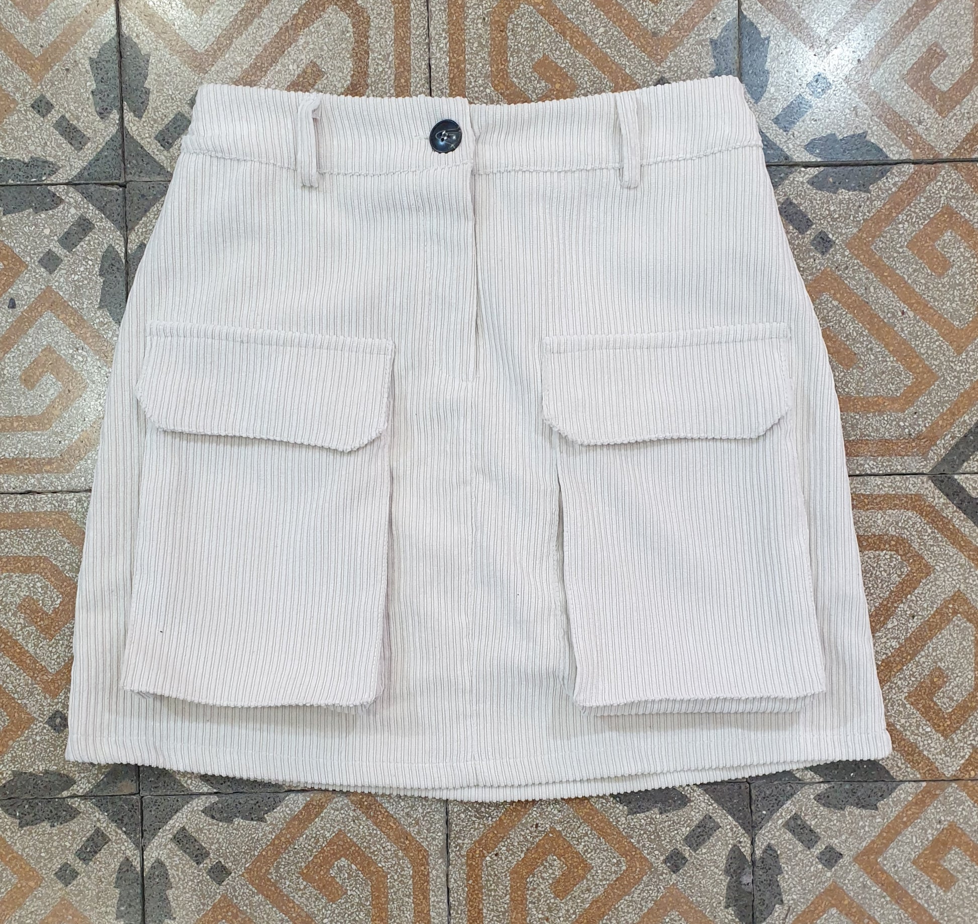 Minigonna in velluto millerighe tessuto elasticizzato con tasche a toppa davanti