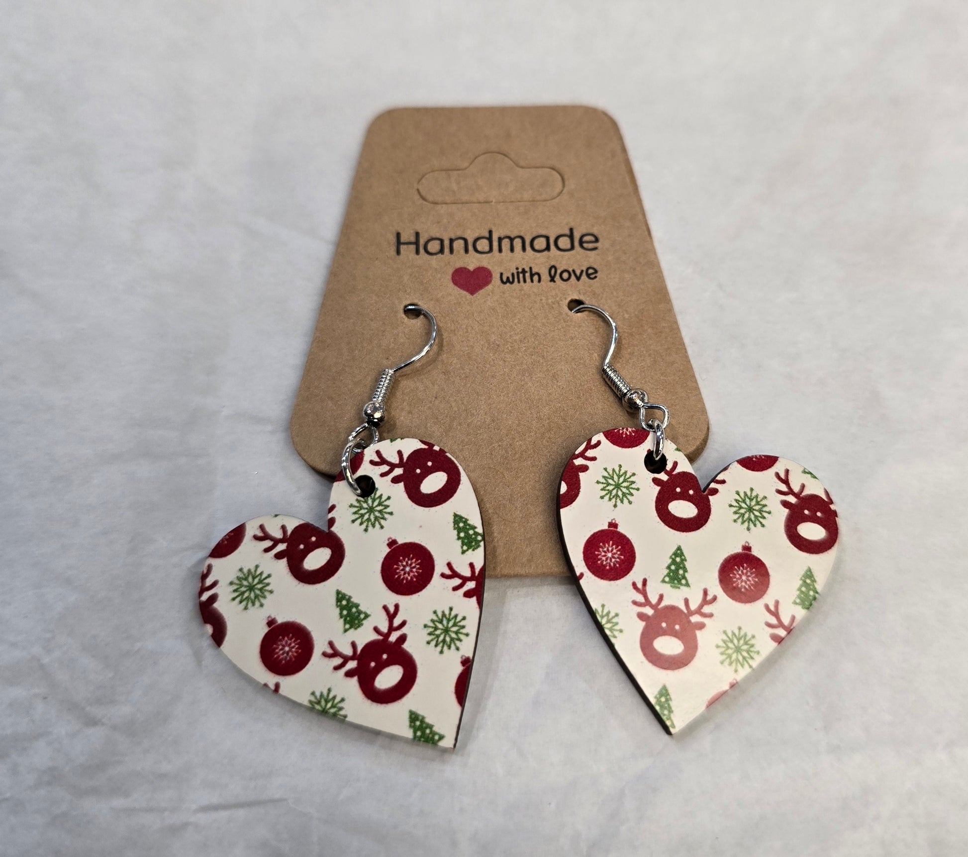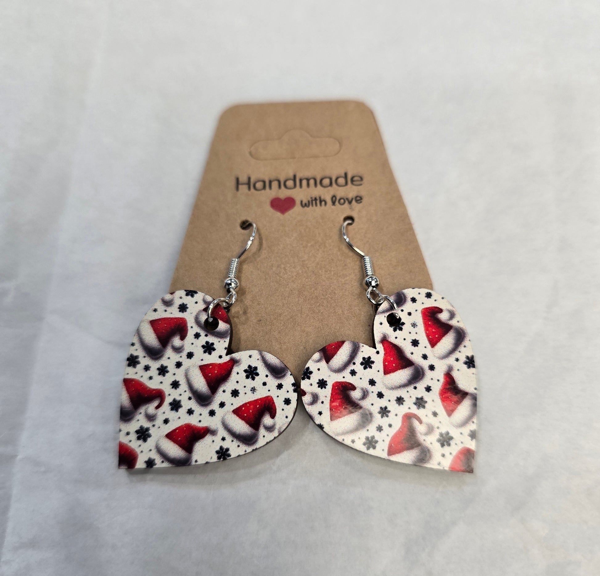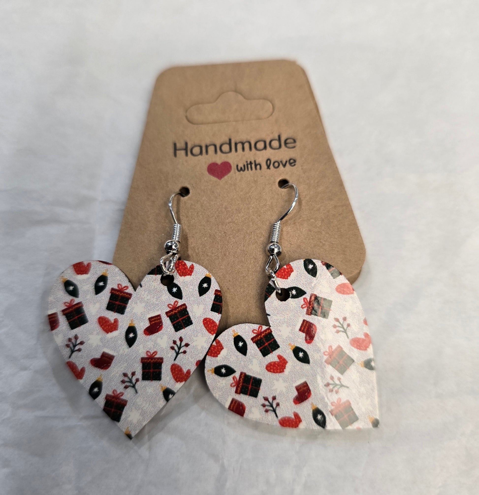 Orecchini in cartone pressato con stampa Natalizia da entrambi i lati con gancio a monachella argento da infilare nel buco del lobo molto leggero misura 3 cm circa