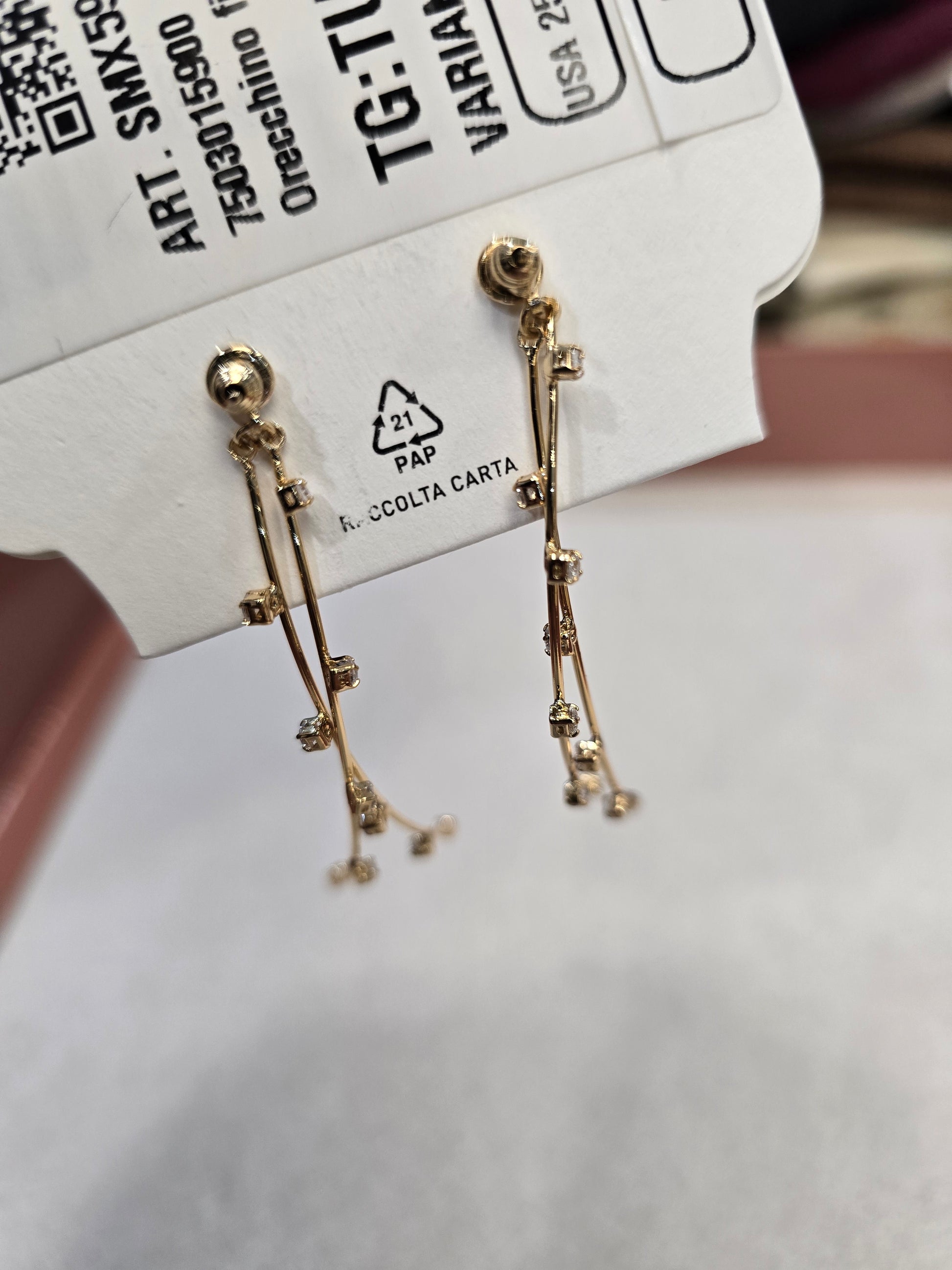 Orecchini colore oro con perla e strass modello da indossare sull'orecchio con buco