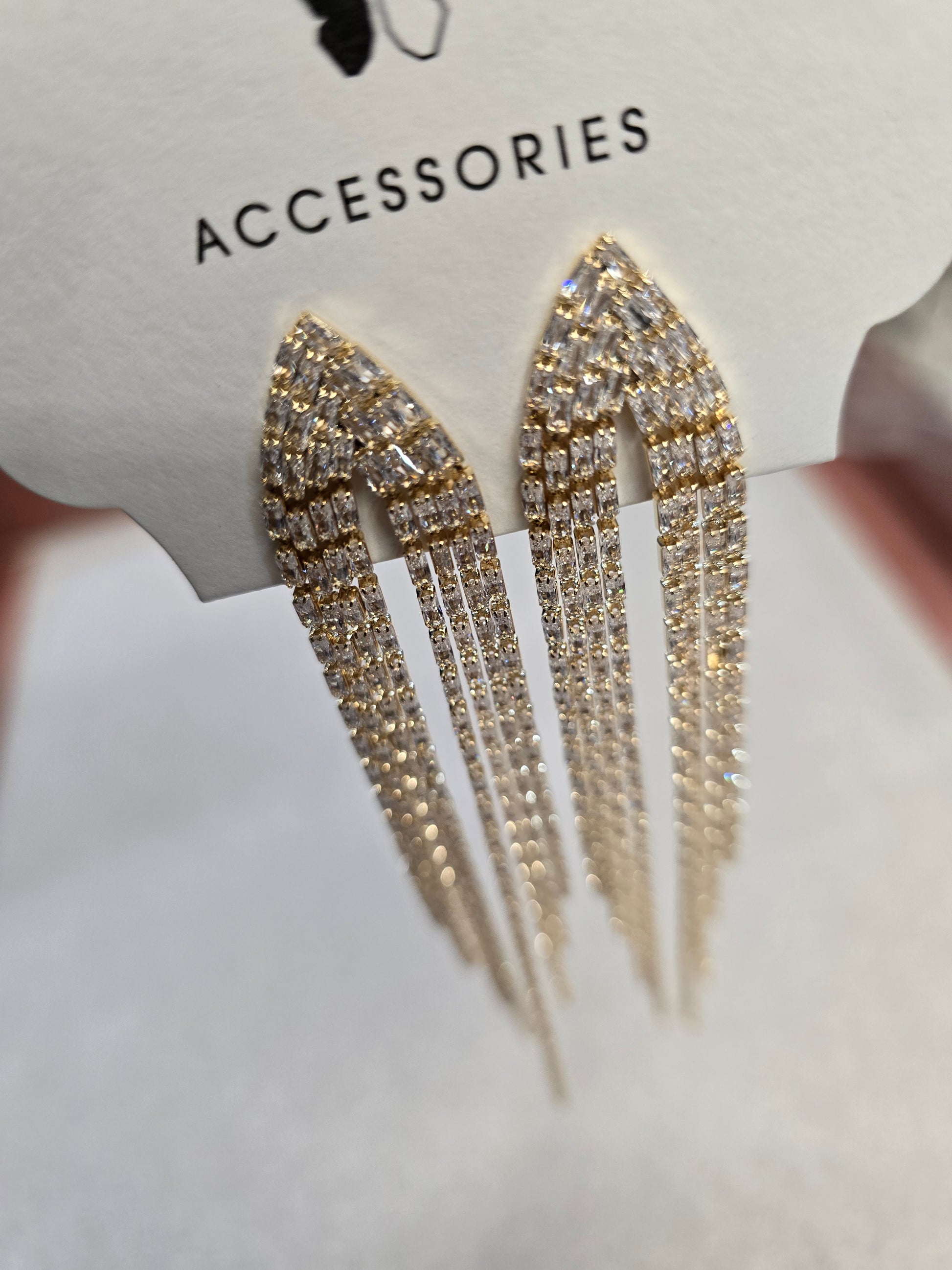 Orecchino colore oro modello pendente con strass molto luminoso ed elegante per orecchi con il buco