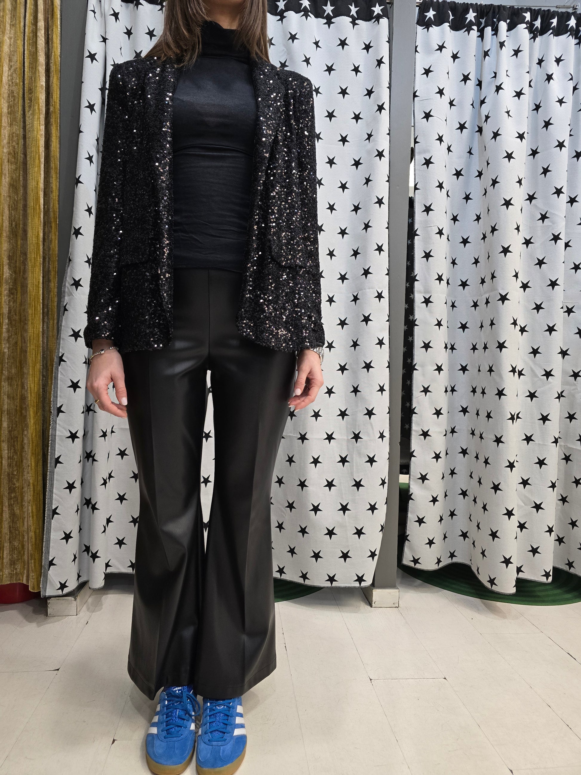 Pantalone modello zampetta in ecopelle con zip sul fianco