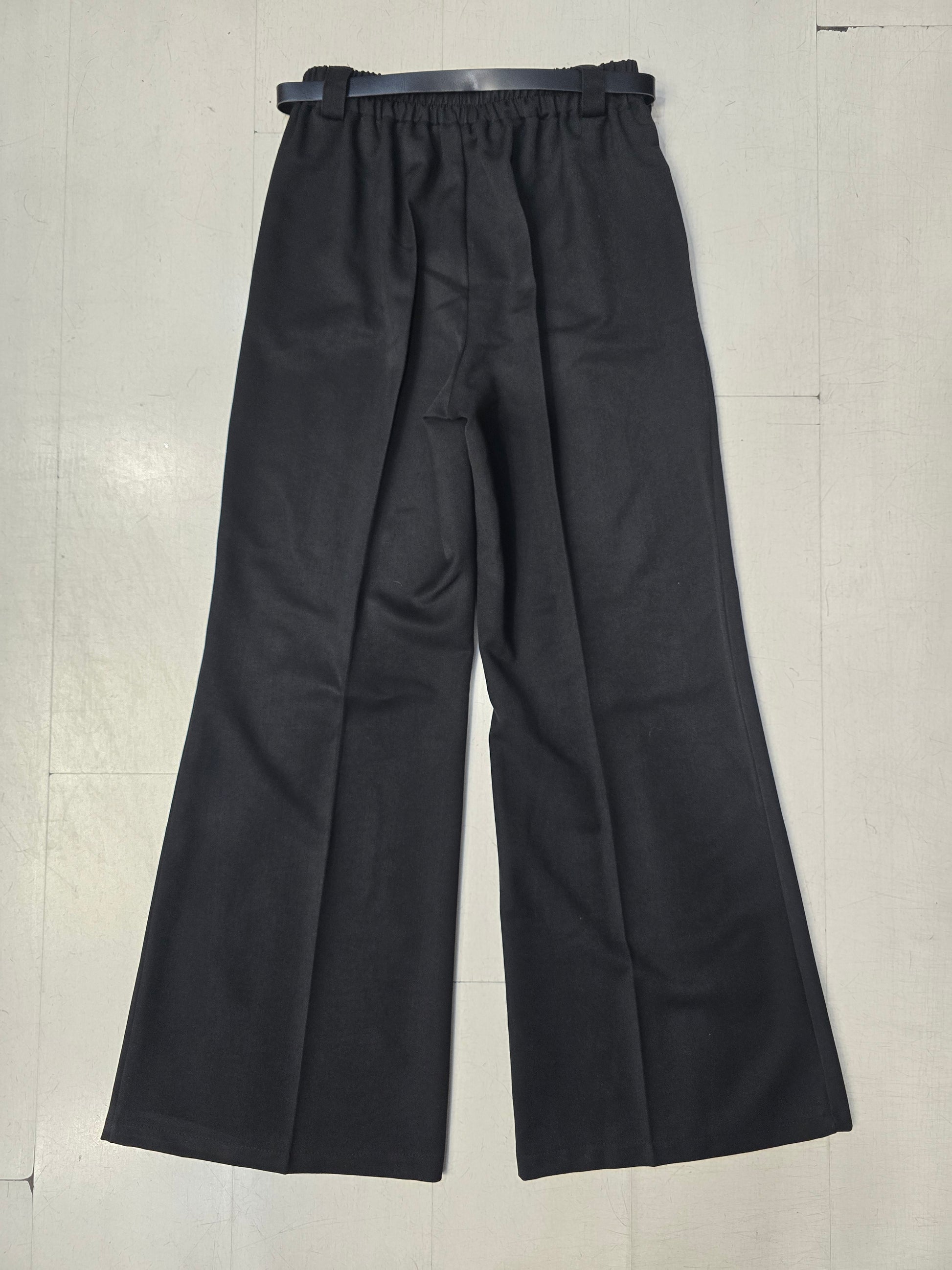 Pantalone a gamba larga con cinturino elastico posteriore.