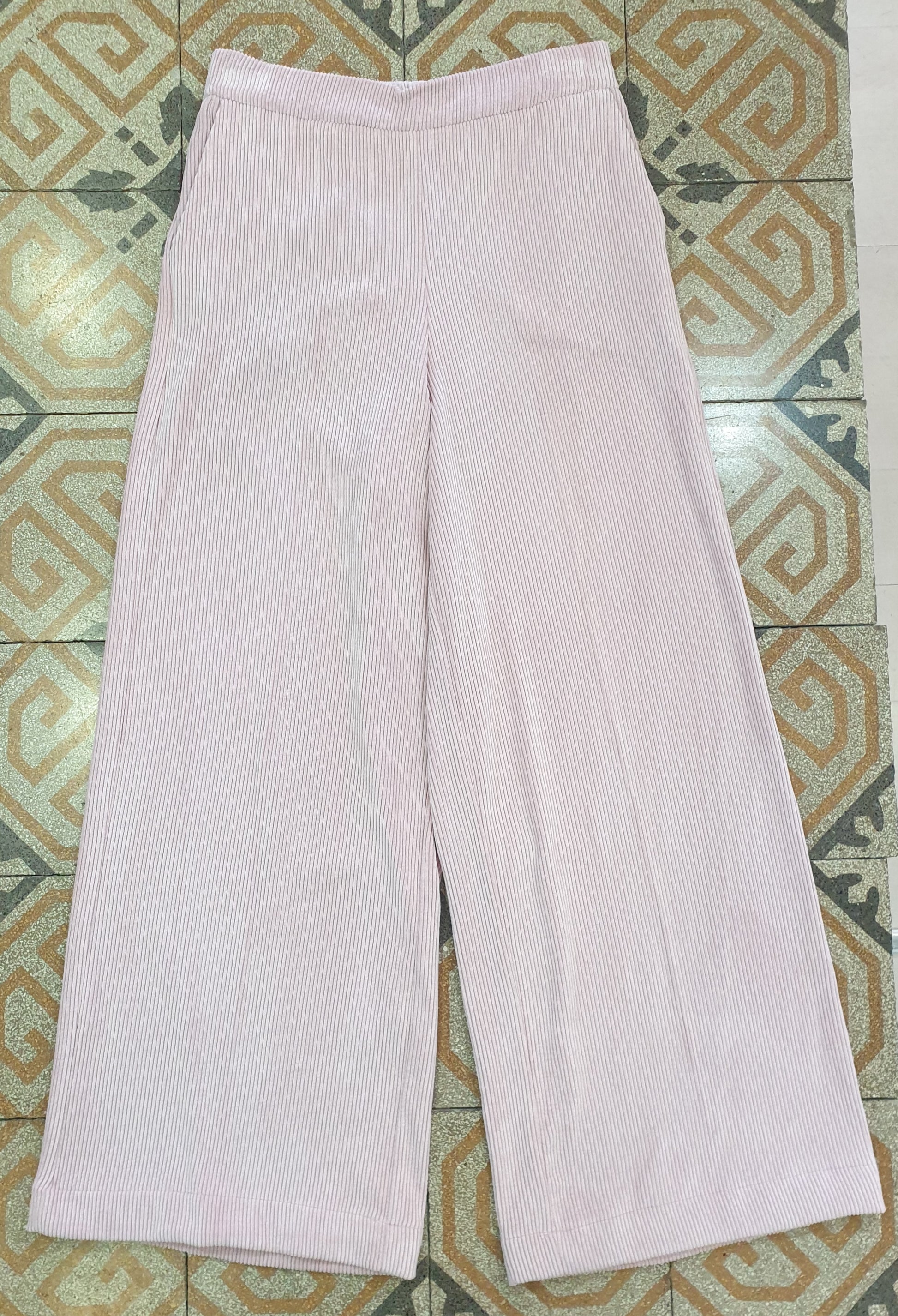 Pantalone modello a palazzo in tessito di velluto millerighe modello comodo con elastico dietro nel cinturino colore rosa