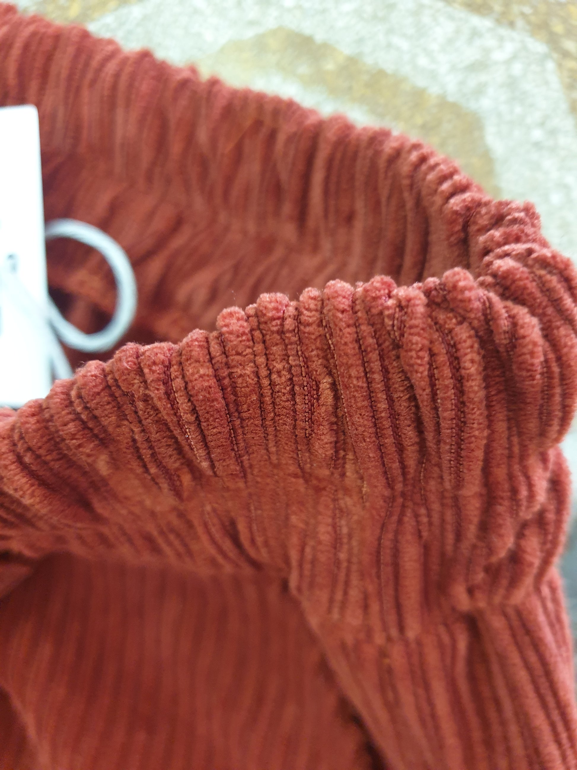 Pantalone in velluto rigato con tasche laterali modello a palazzo elastico dietro nel cinturino possibilità di abbinamento con il blazer a doppiopetto nello stesso tessuto