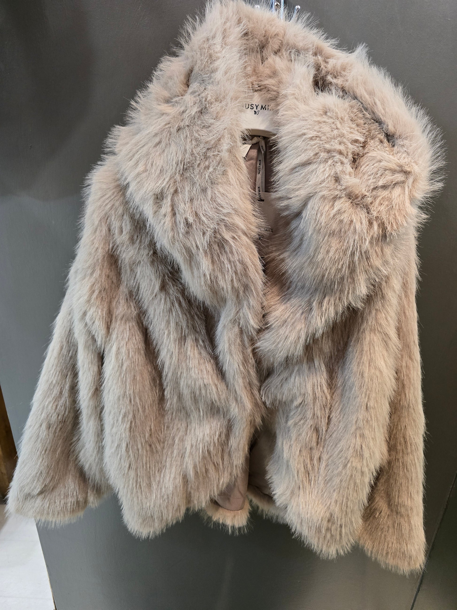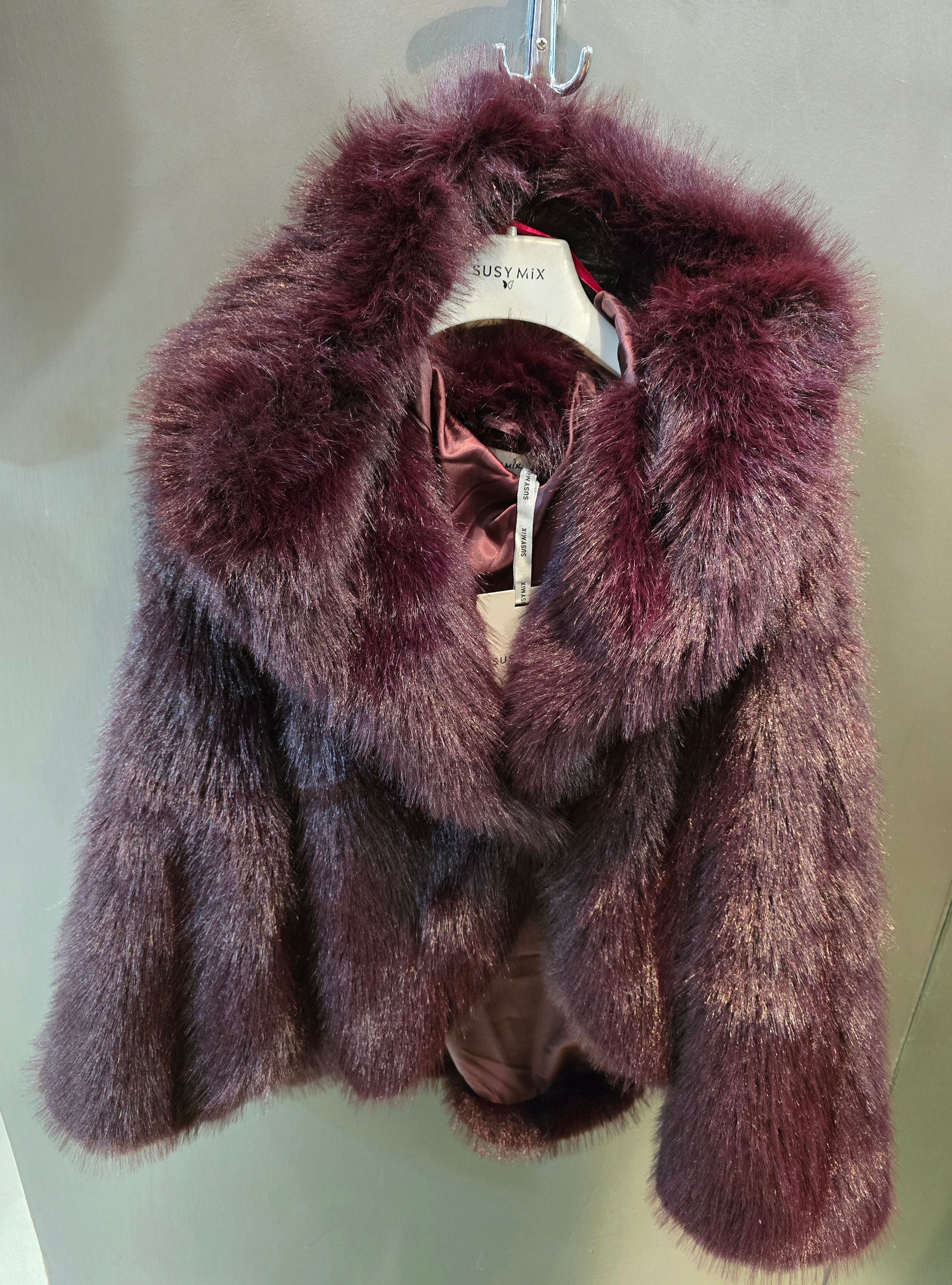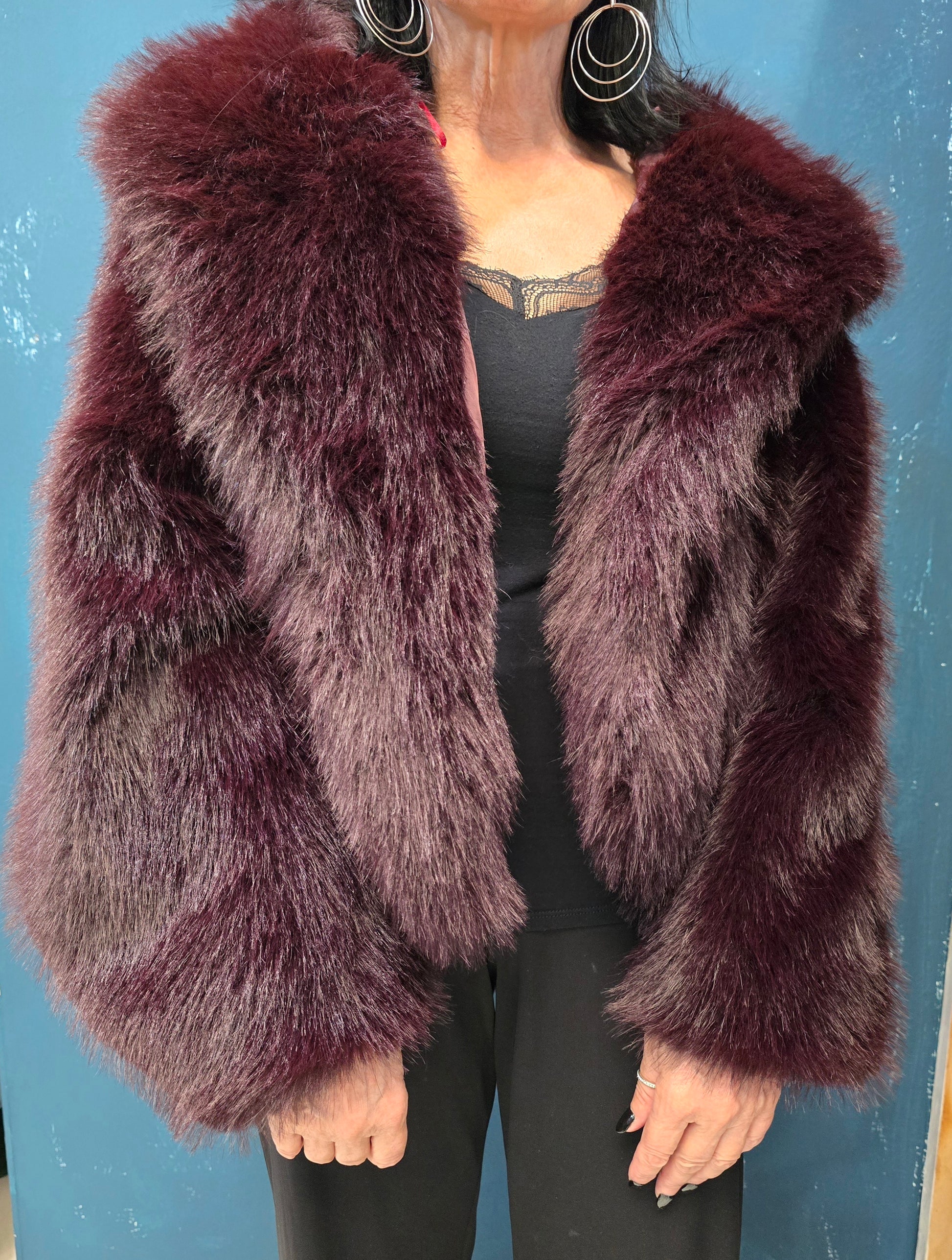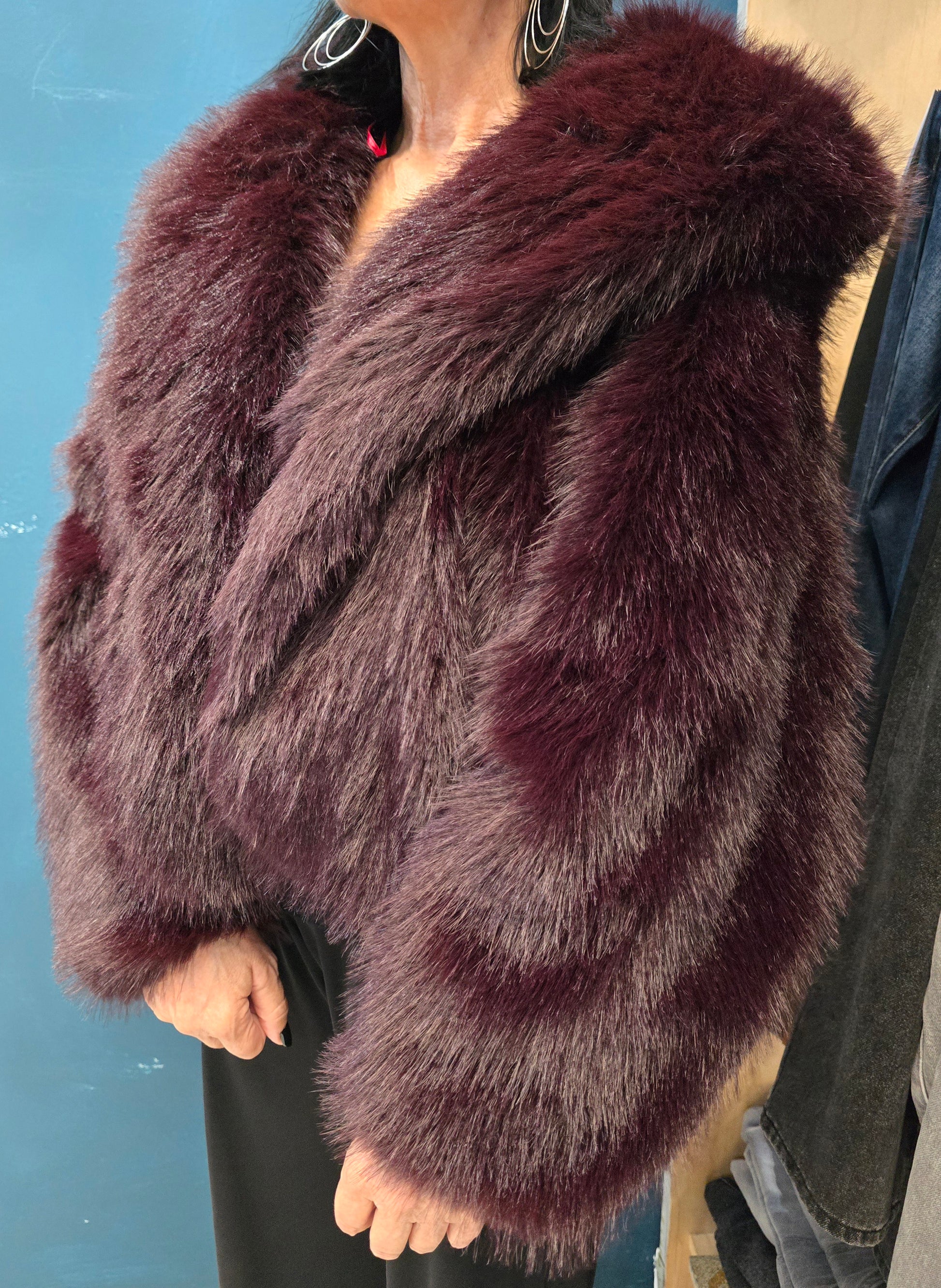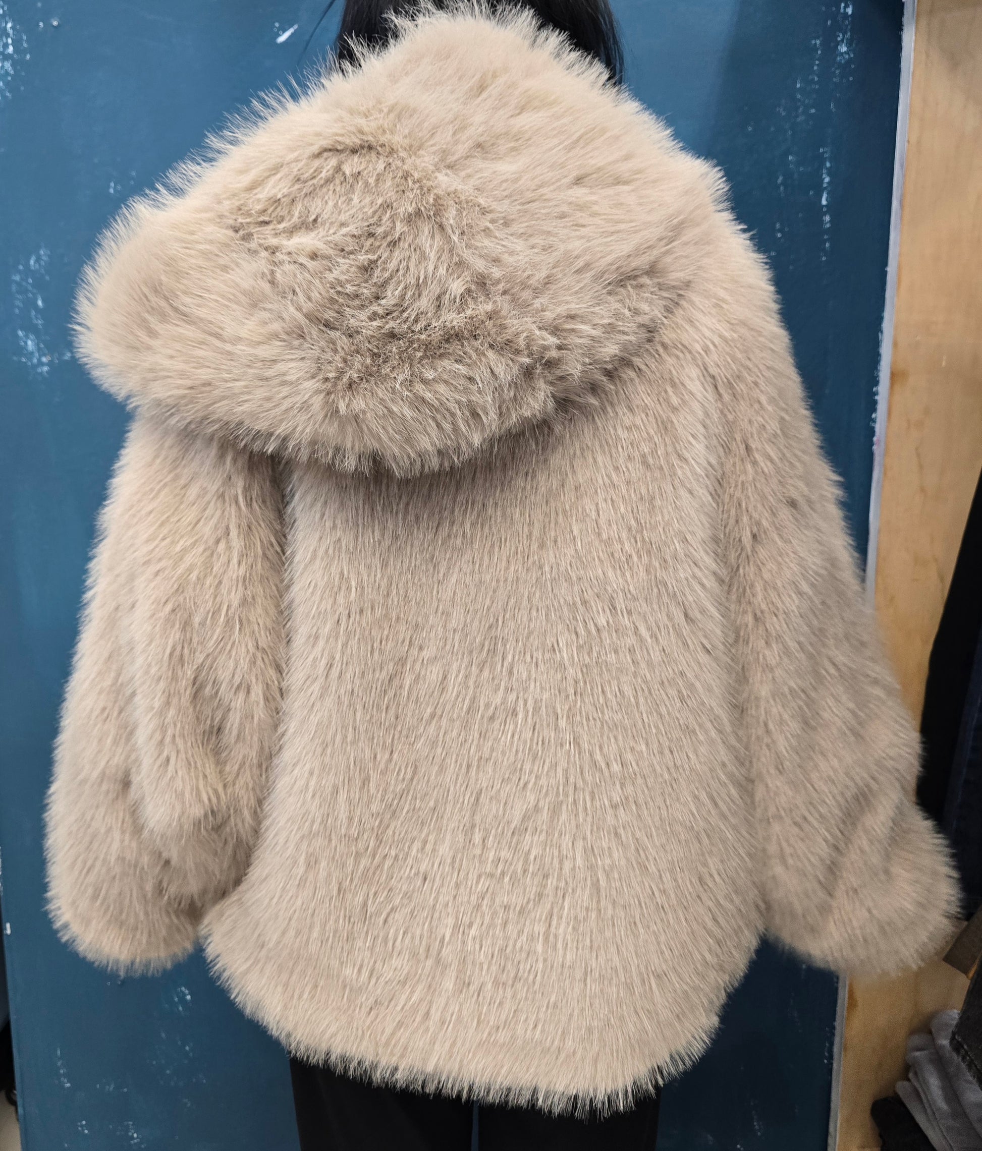 Luxury sostenibile che protegge con stile! Questa pelliccia ecologica media con cappuccio e gancio è perfetta per feste eleganti e sostenibili.