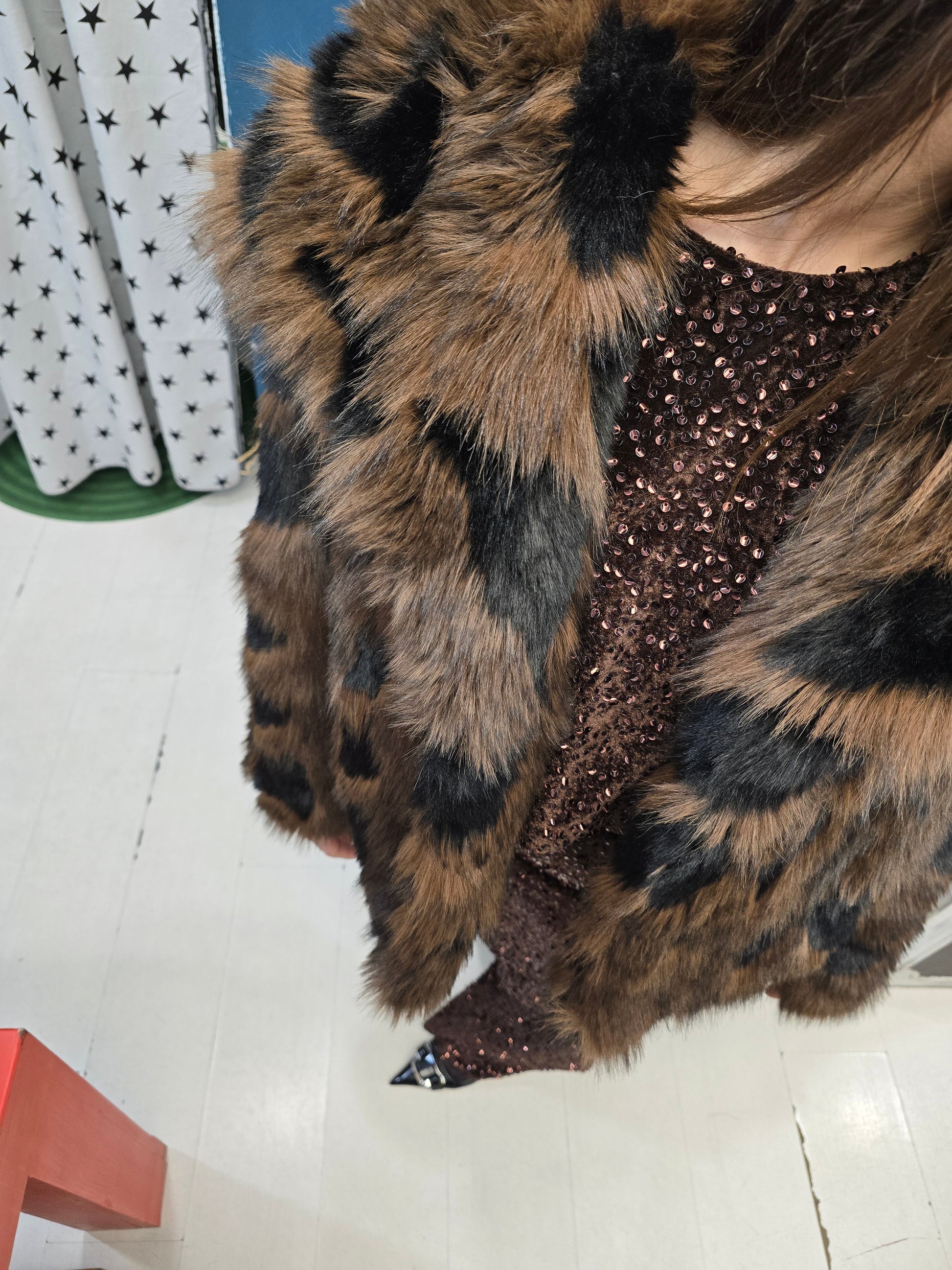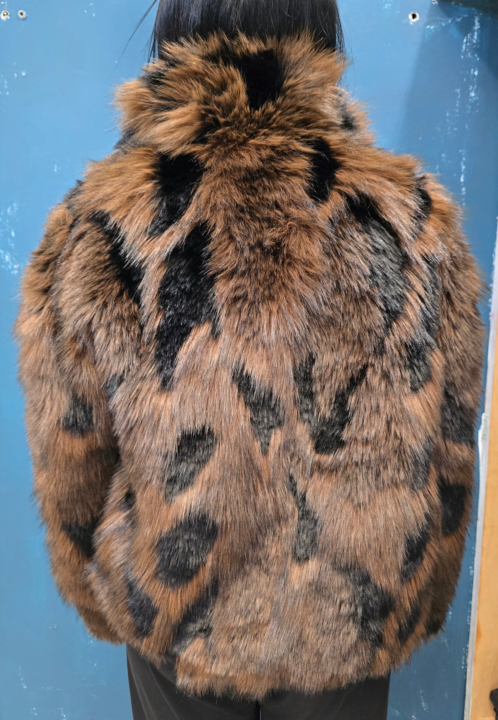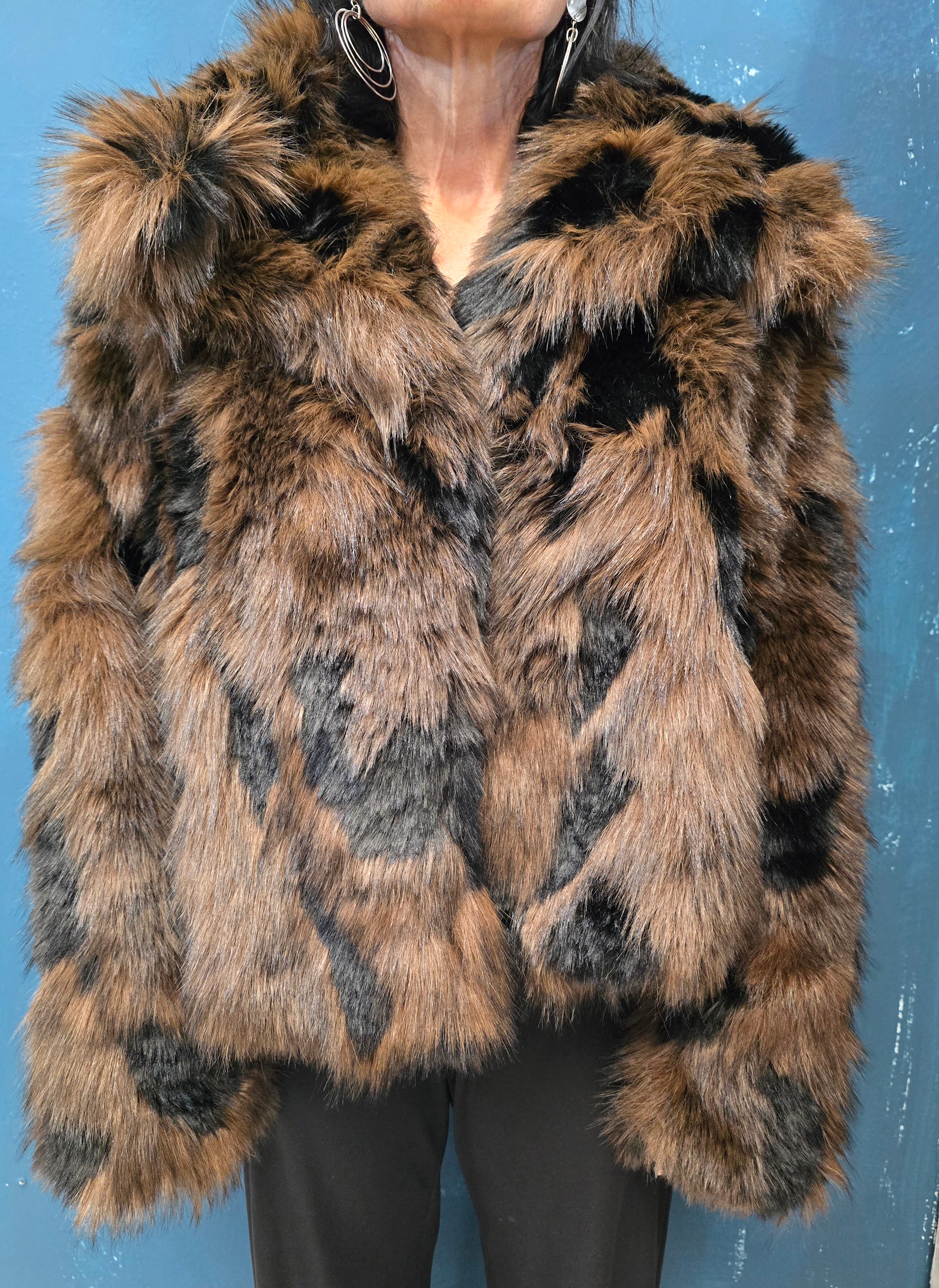 Pelliccia Ecologica Effetto Chiazzato Nero Marrone
