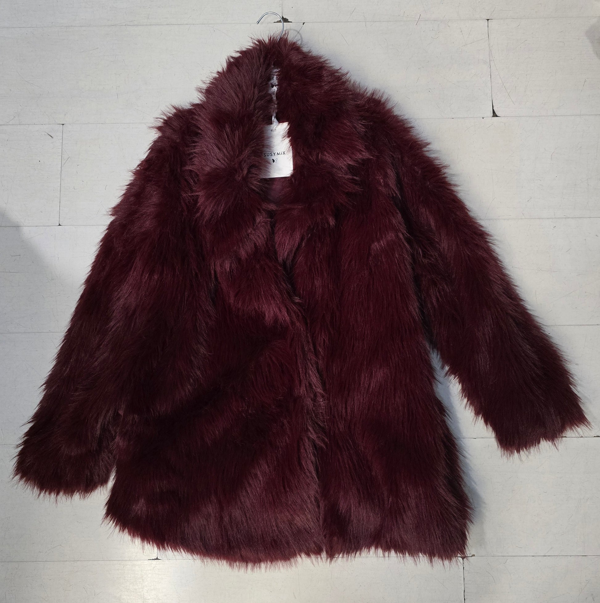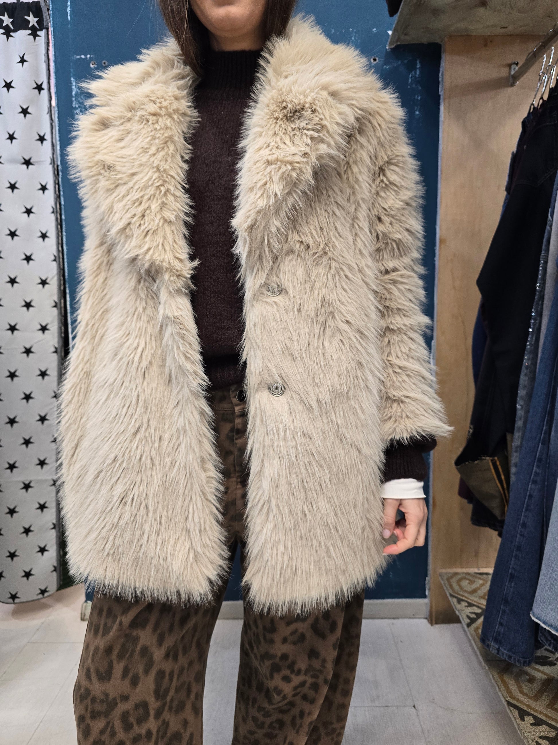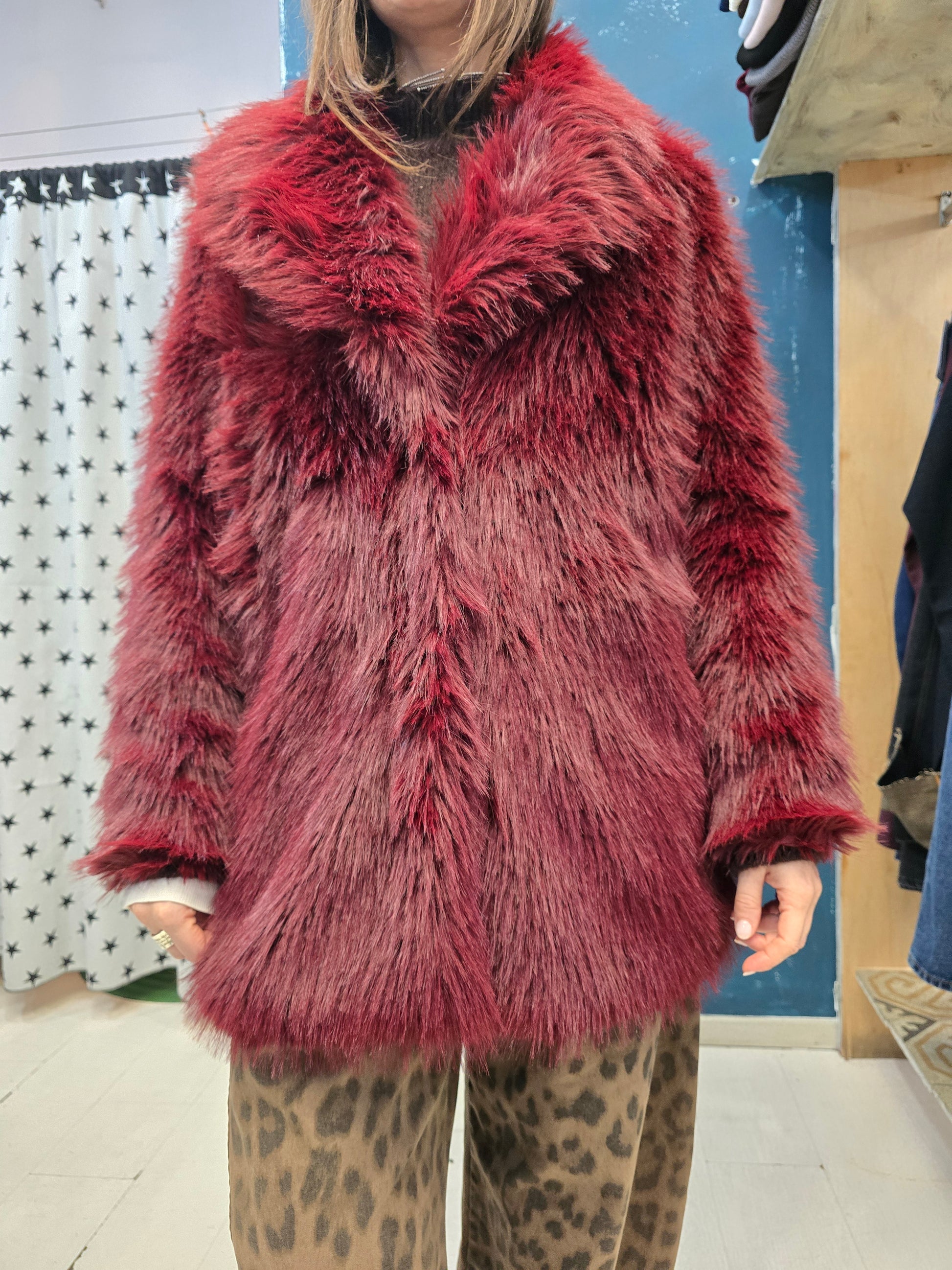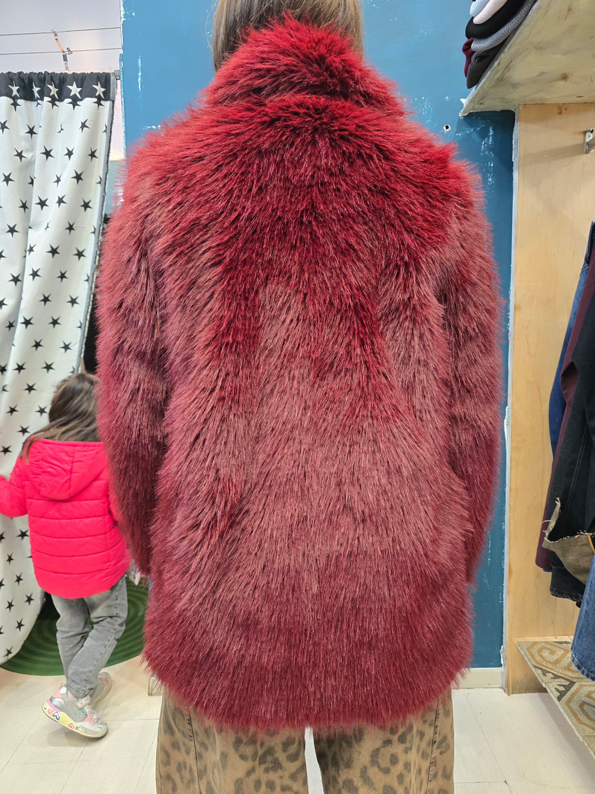 Pelliccia ecologica modello midi con collo a giacca disponibile in beige e bordeaux