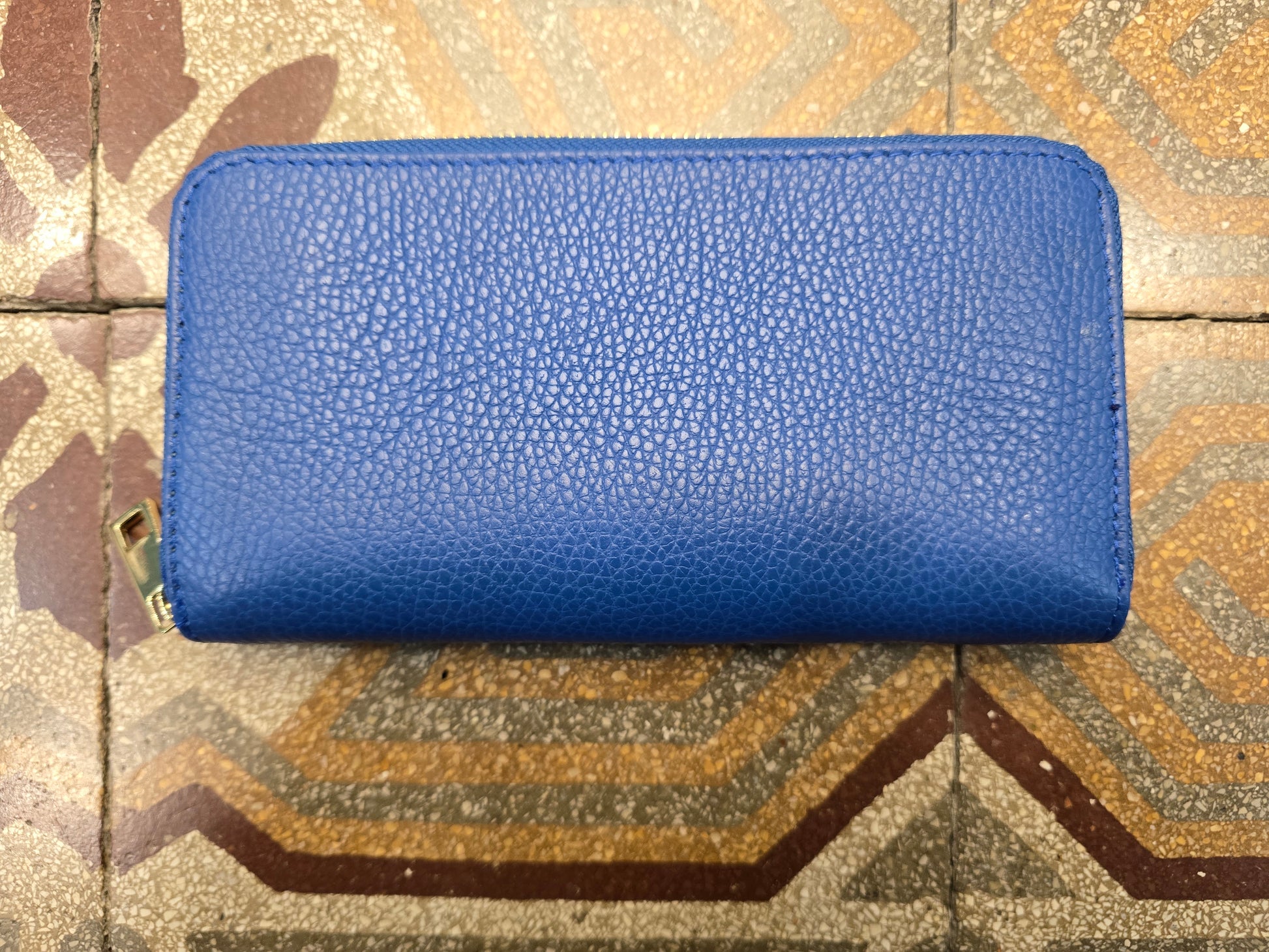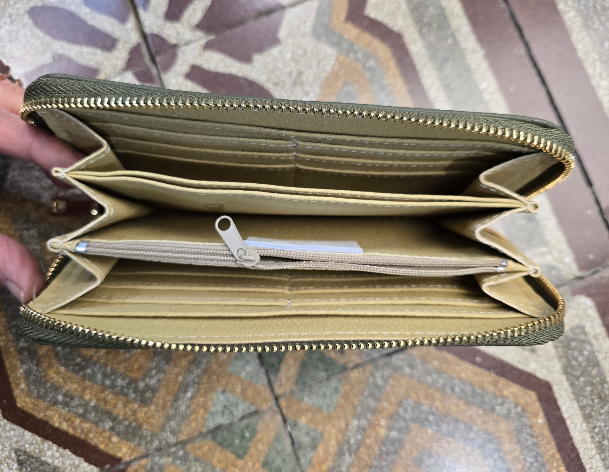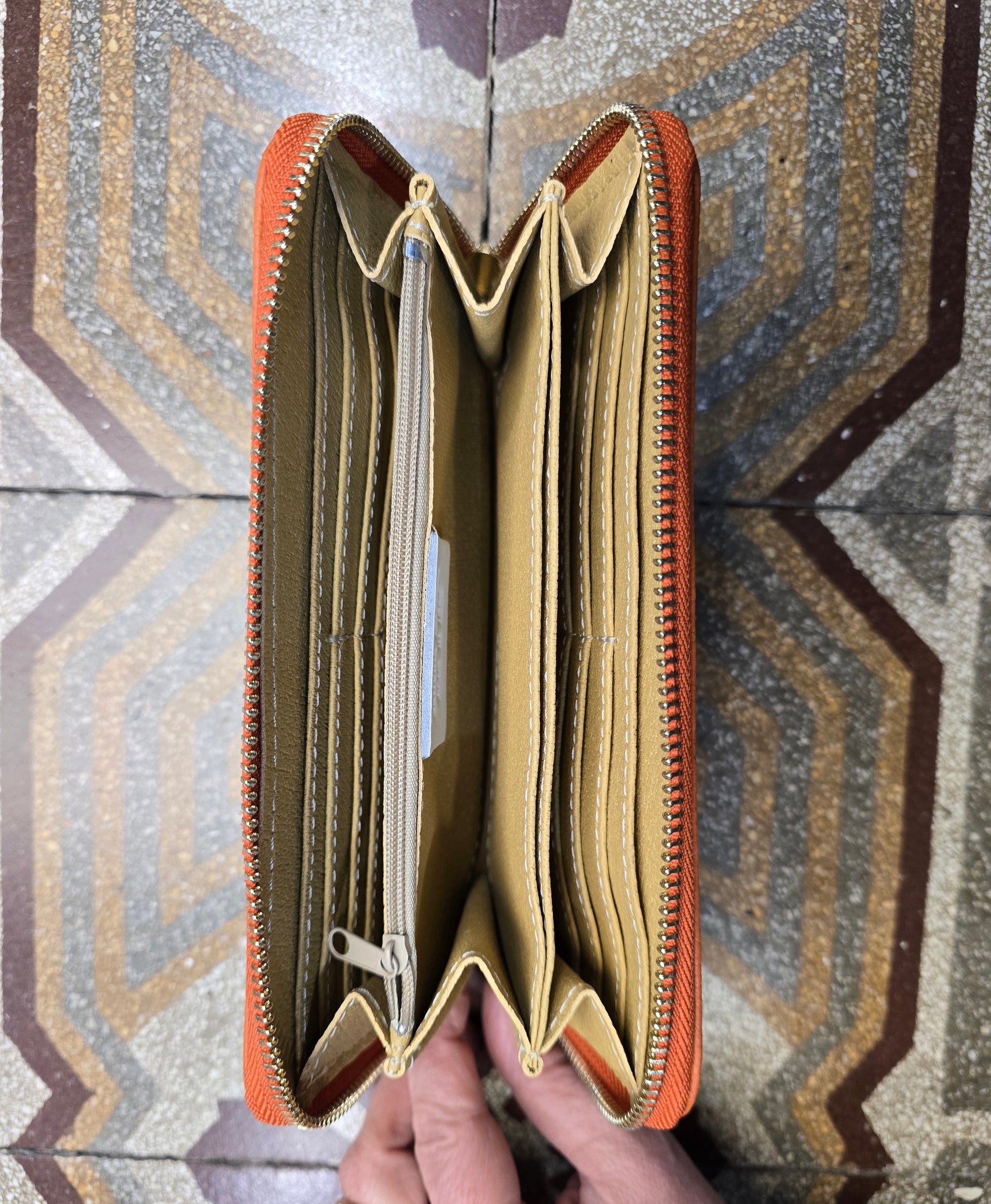 Portafogli in vera pelle modello chiuso con zip con disposizione interna a ventaglio