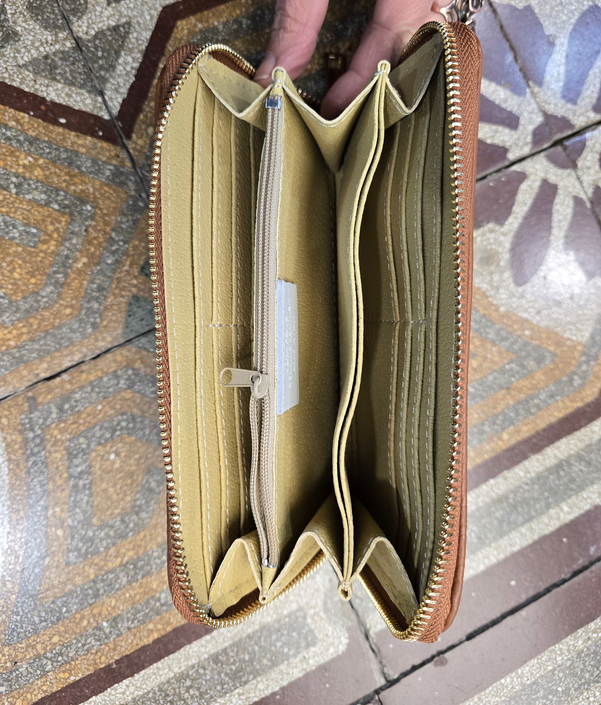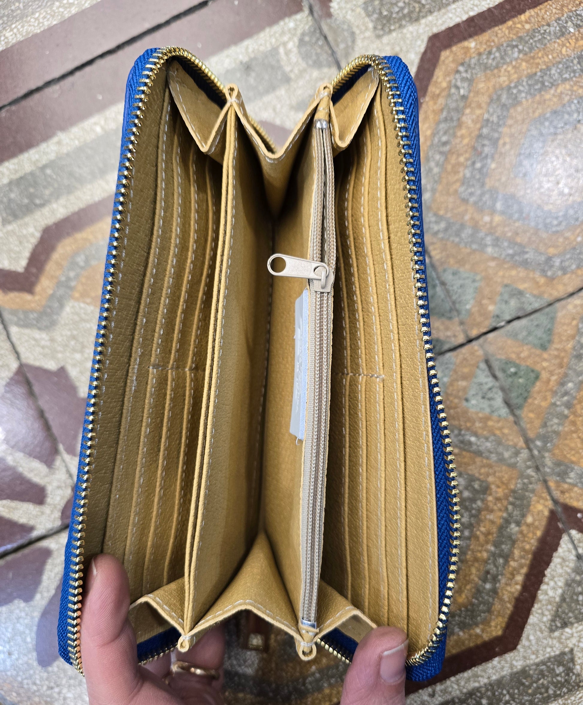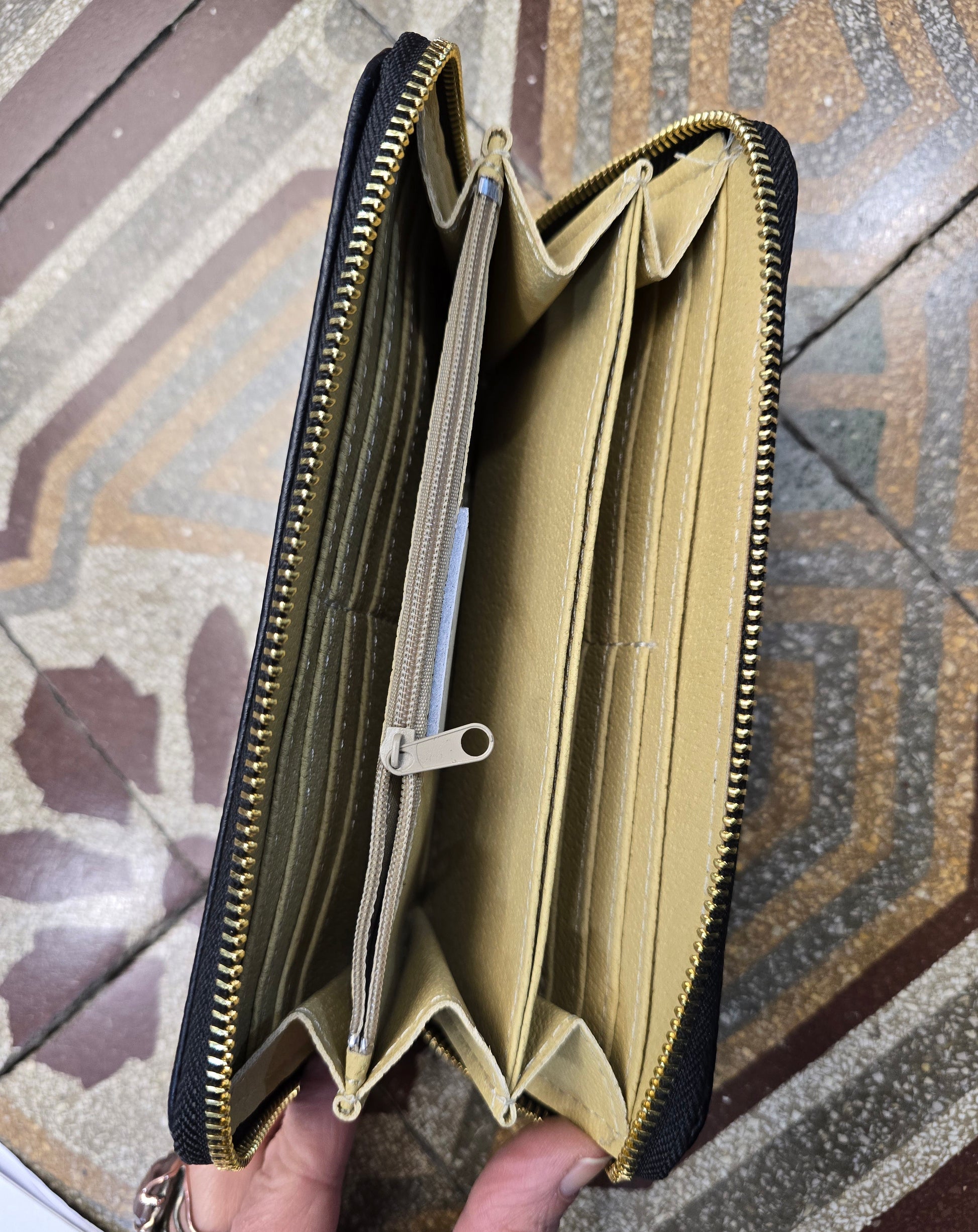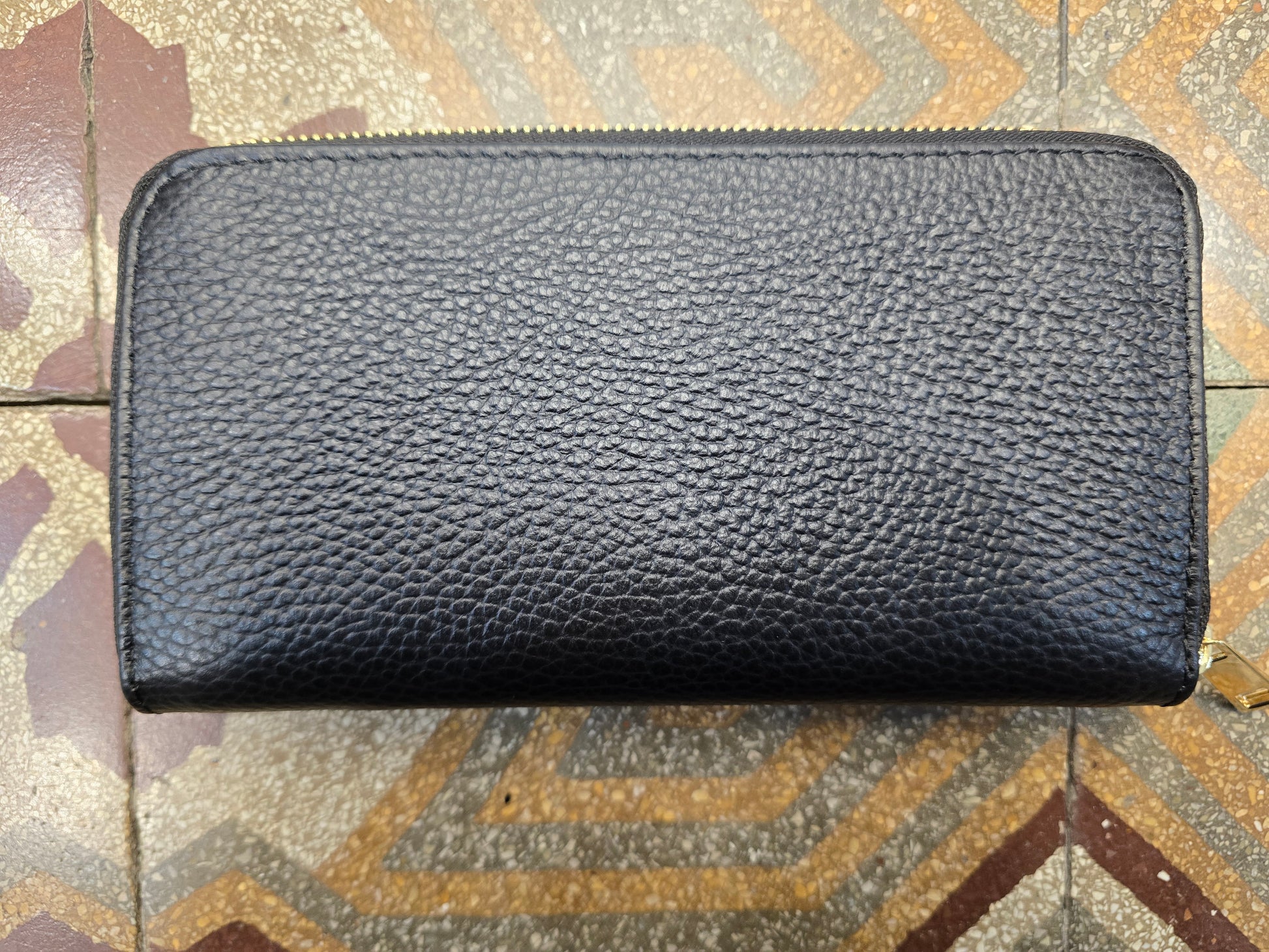 Portafogli in vera pelle modello chiuso con zip con disposizione interna a ventaglio