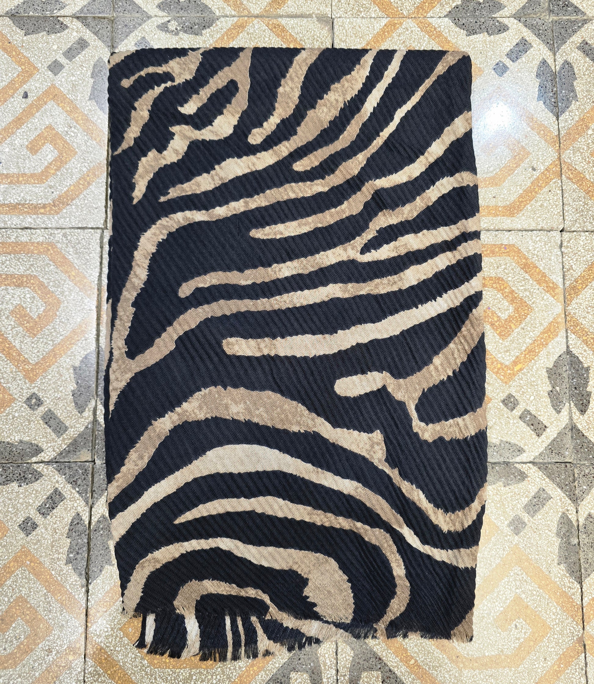 Sciarpa in viscosa leggera tessuto con effetto plissè a fantasia animalier