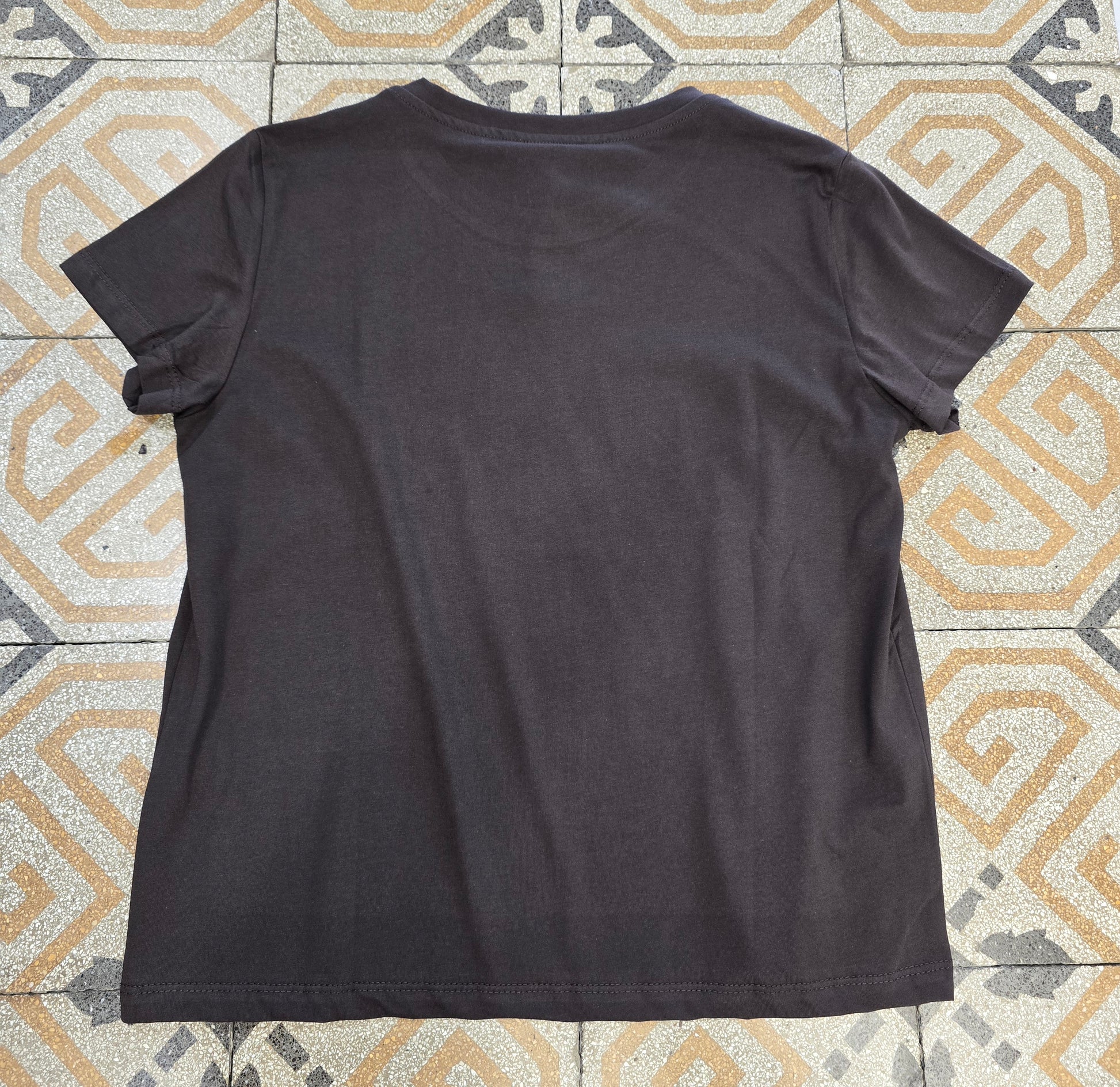 T-shirt paricollo in cotone marrone con stampa davanti, taglia unica.