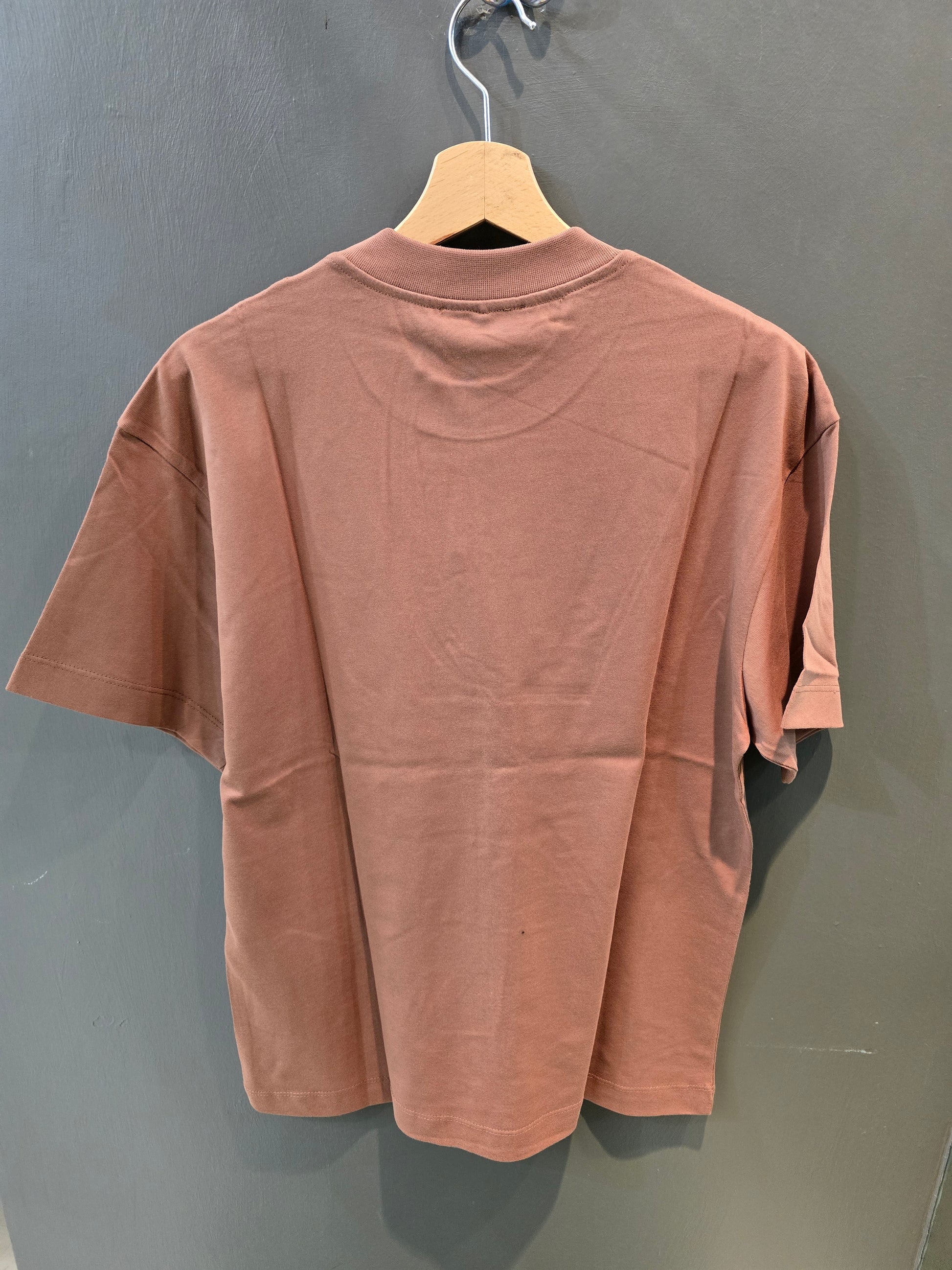 T-Shirt Paricollo Cotone Logo Davanti Marrone