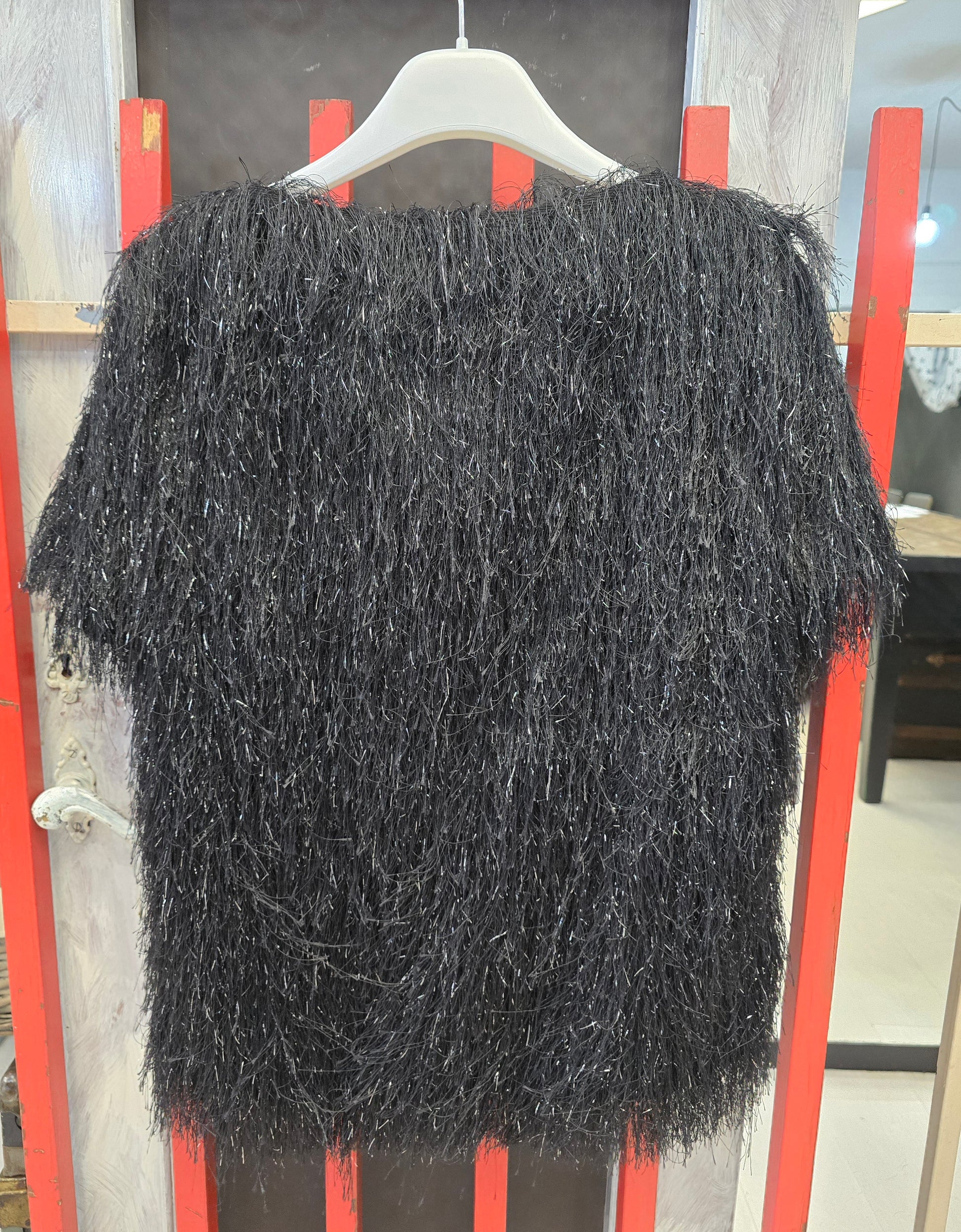 T-shirt pelosa modello a paricollo e taglia unica colore nero